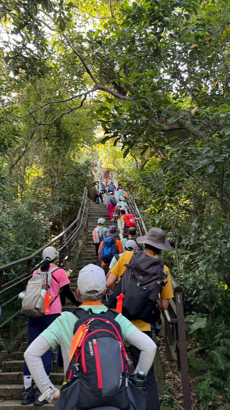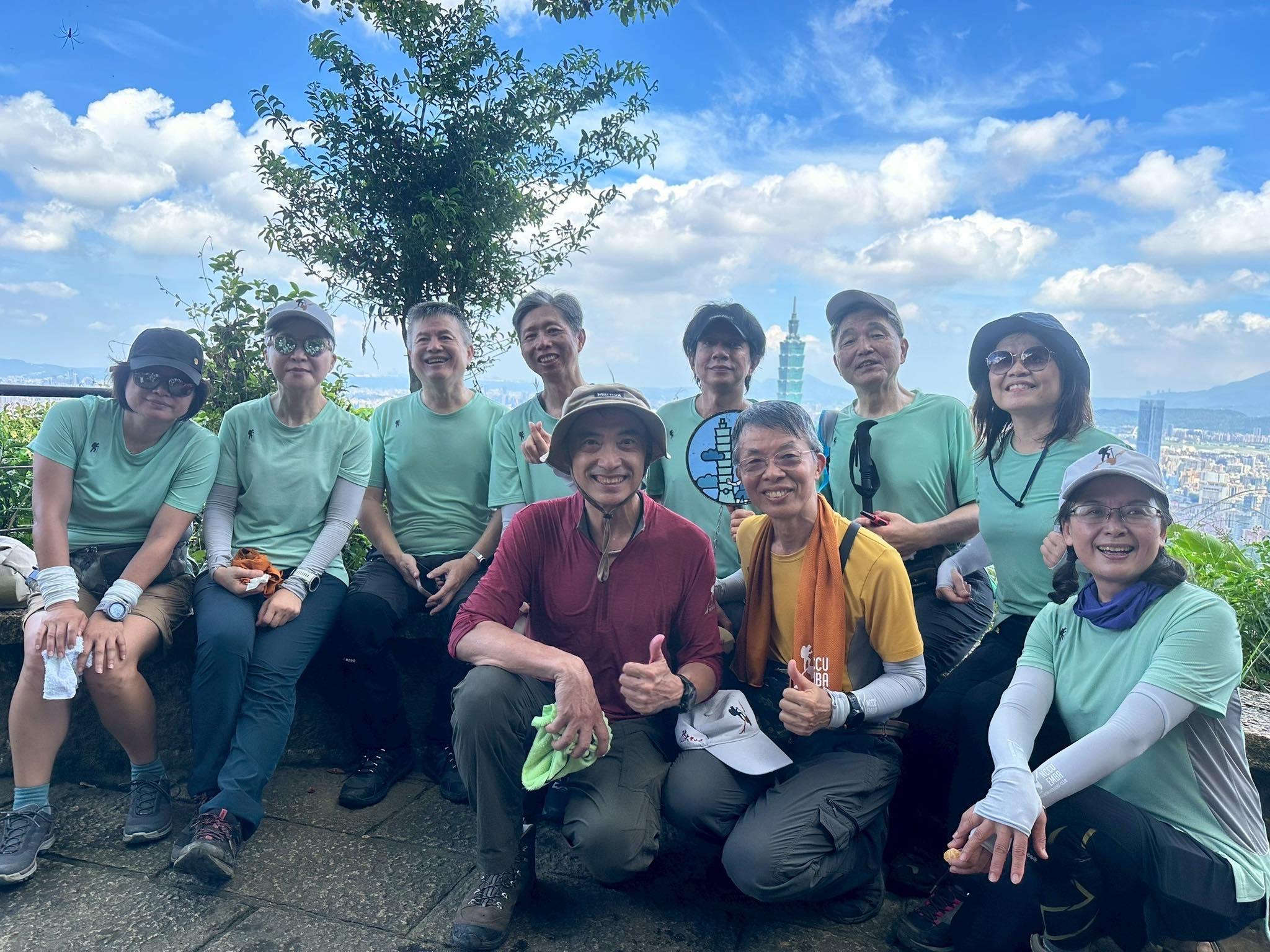 起點從松山家商出發,第一段行程前往永春埤濕地,沿途欣賞城市與自然交織的景致。接著經過永春高中,一路走至永春崗公園登山口,於此地集結拍照留念,之後正式開始登山。
