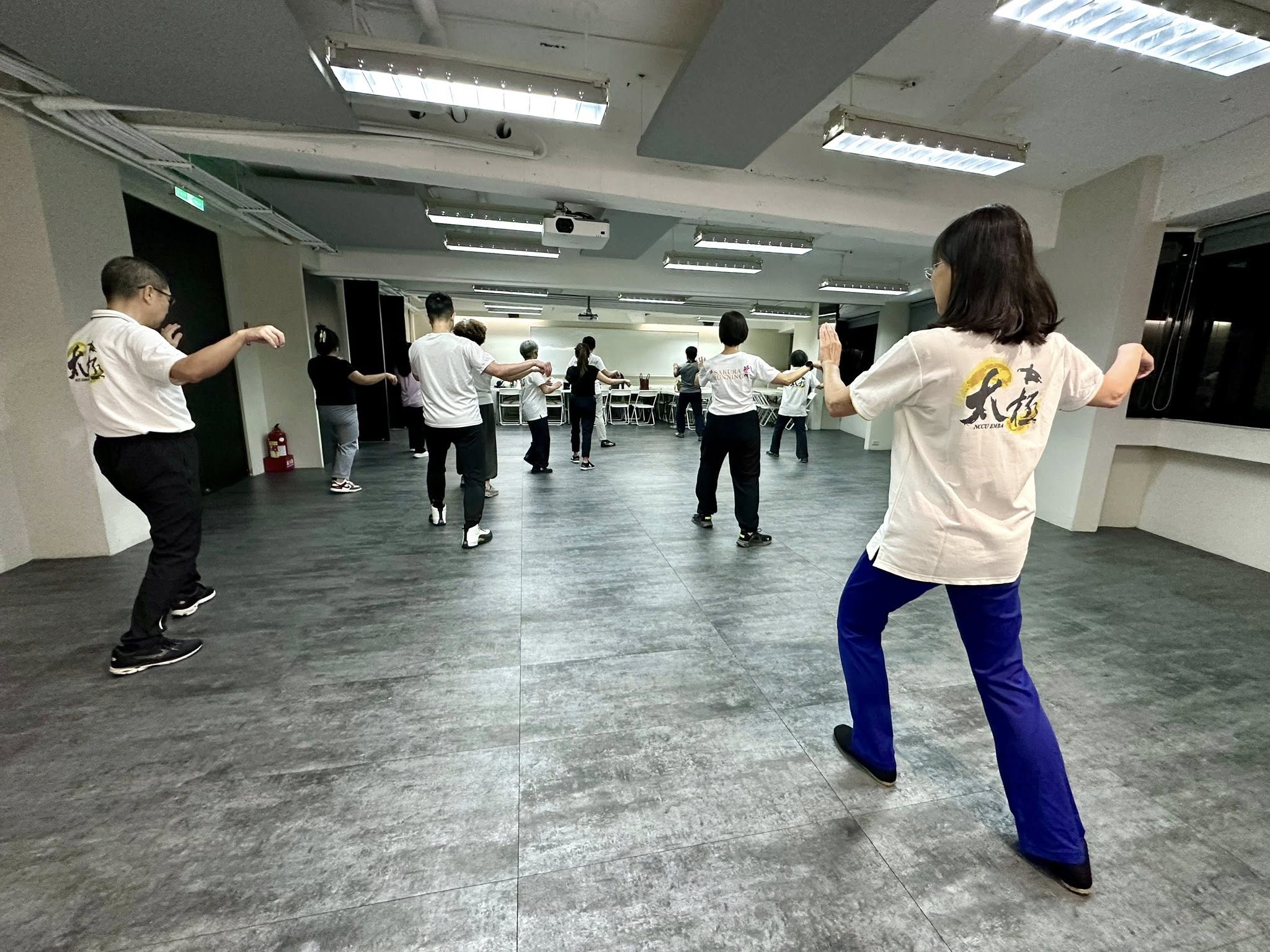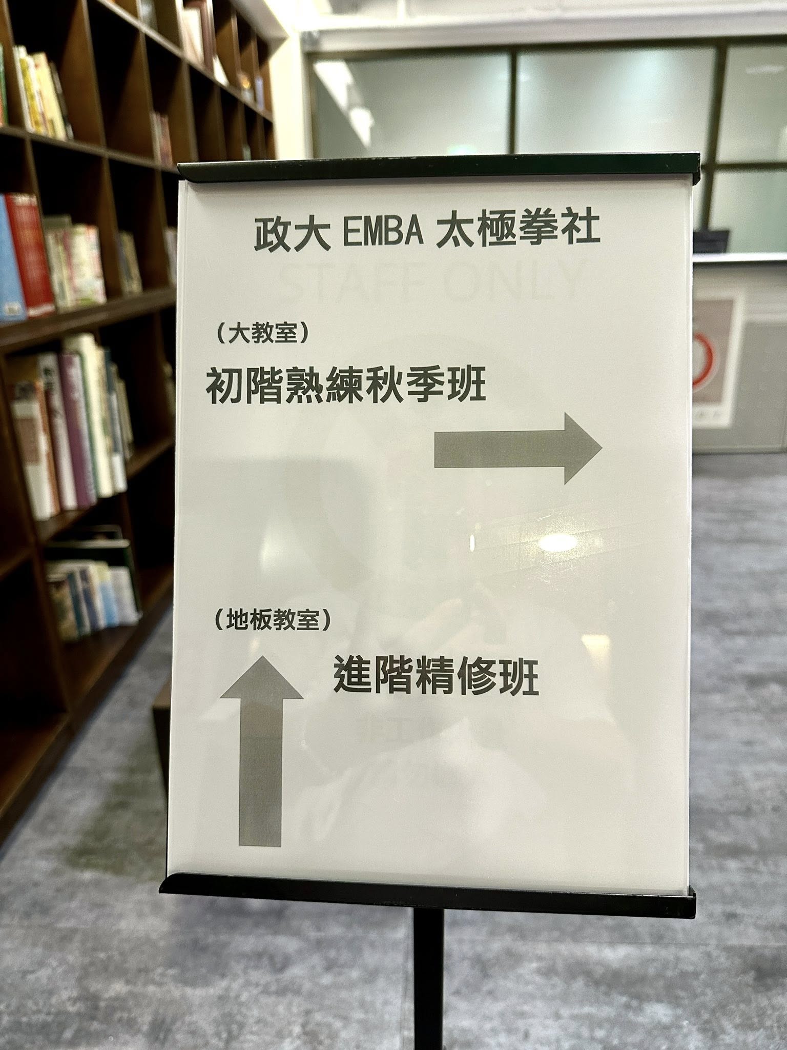 政大EMBA太極拳社秋季班有二班,分別是初階熟練班與進階精修班,剛好同一天在崇友基金會場地上課,初階熟練班在大教室,進階精修班在地板教室。