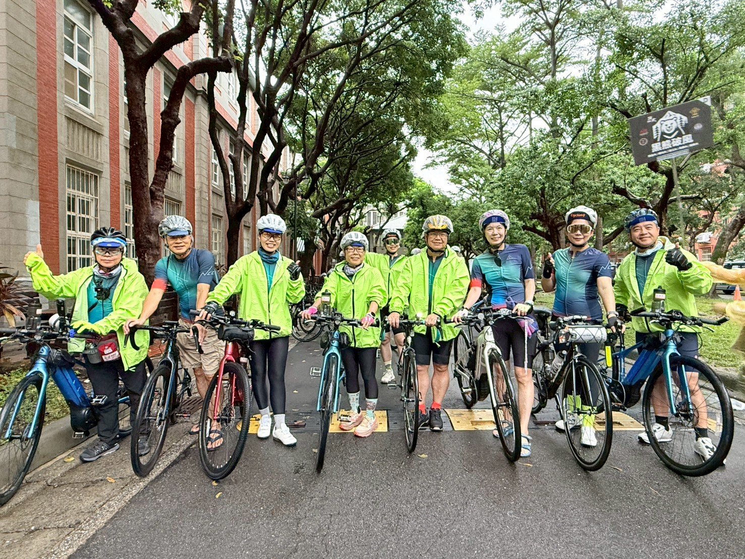 出發這天早晨,臺師大的校門口已被繽紛的車衣與亮眼的雨衣染成一片熱烈的顏色。天空低垂,細雨連綿,但誰也沒有退縮。 2025年10月25日在師大校園,一聲清脆的鳴笛,【全國EMBA鐵馬論劍第三屆單車環島】正式啟程。