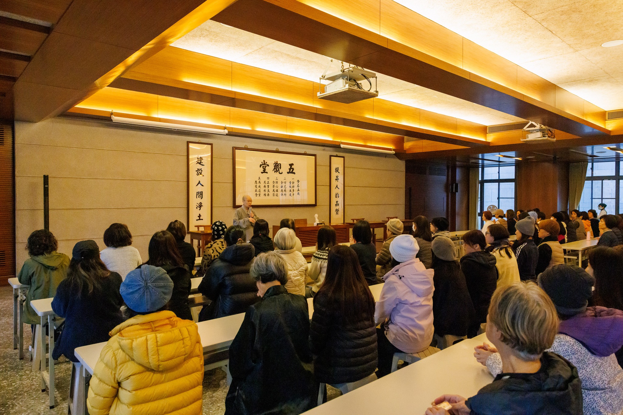 兩天課程以基礎禪修法、動禪等練習帶領我們入門。最讓人受用的一句核心提醒是:「不管妄念,回到方法。」妄念不是敵人,也不需要被消滅。越想趕走它,越陷入拉扯;真正的練習,是在念頭來去之間,不責備、不追逐,只把注意力溫柔地帶回方法——回到呼吸、回到步伐、回到身體的覺察。 這份「回來」的能力,看似簡單,卻是一種成熟:不再被情緒與思緒牽著走,而是一次次把主導權放回自己手上。