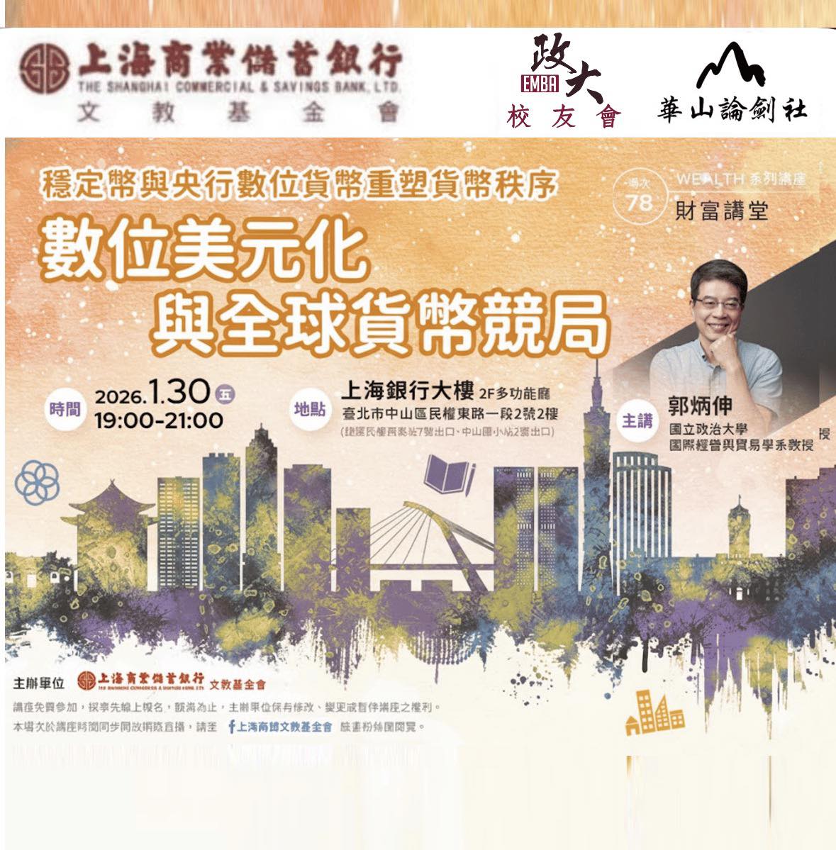 上週五(1/30)感謝華山論劍學長姐熱烈參與 2026 華山論劍 × 上海商銀首場財富講堂