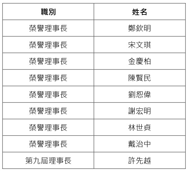 詹O男、楊O祐、郭O卿、徐O伯、劉O美、陳O英、陳O訓、呂O美、卓O玟、曾O鈎、茆O榮、陳O斌、張O歷、趙O燕、郭O銘、黄O平、黃O芸、陳O燕、劉O漢、許O潤、翁O源。